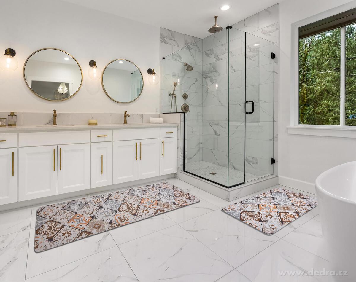 SPA – ultrasavý křemelinový běhoun 120 × 40 cm s motivem ornamentu. Rychleschnoucí, protiskluzový a antibakteriální. Praktický a elegantní doplněk do koupelny, kuchyně, předsíně či wellness.