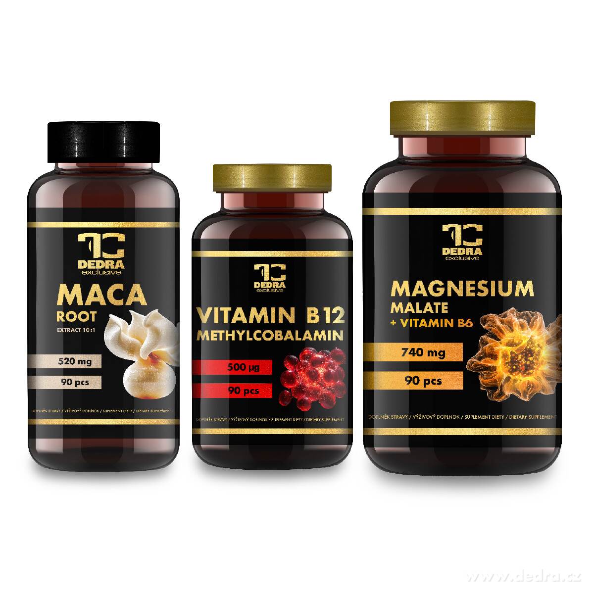 Dárkový set pro více energie, vitality a odolnosti! Maca Root podporuje hormonální rovnováhu, vitamin B12 dodává sílu a energii, a hořčík s vit. B6 bojuje proti únavě. Ideální pro aktivní lidi i ty, kteří jsou vystaveni stresu. Součástí je transparentní sáček na zabalení.
